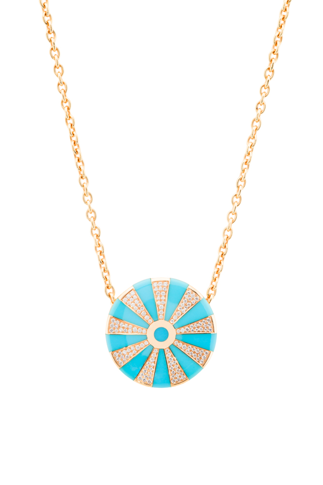 Kette mit Mendini-Anhänger in Gelbgold mit Türkis und 135 Brillanten