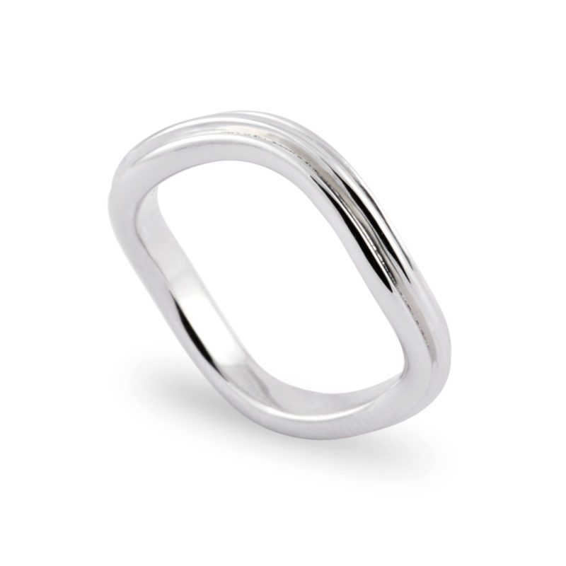 Trauring in Weissgold, geschwungen und doppelt gewellt, fein
